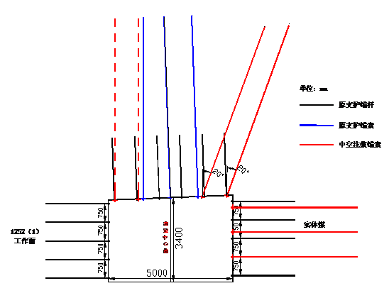 1252(1)轨顺顶板支护仰视图