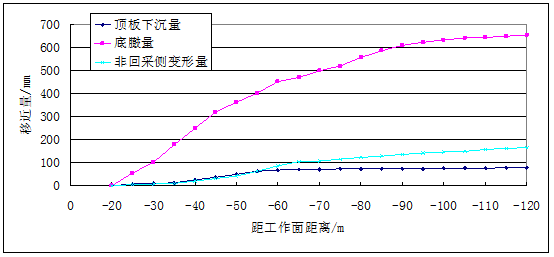 工作面后方巷道表面位移变形量曲线