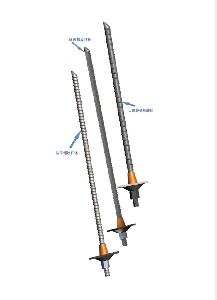 2、杆体的外形分为12.7mm螺距波形螺纹、10mm螺距梯形螺纹、大螺距(螺距20mm)梯形螺纹三种,杆体螺纹可左旋或右旋。